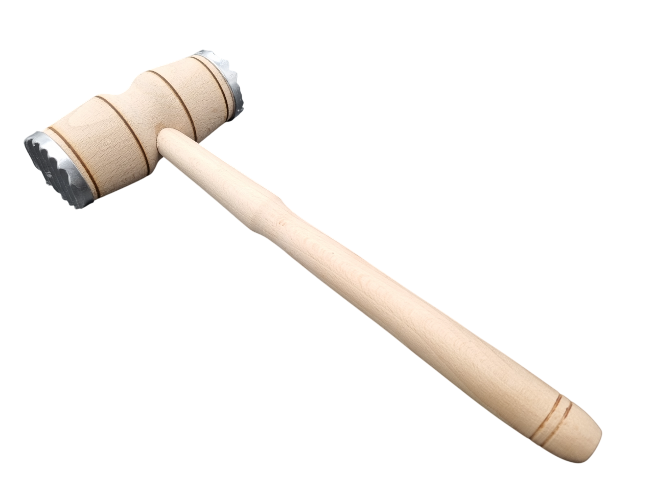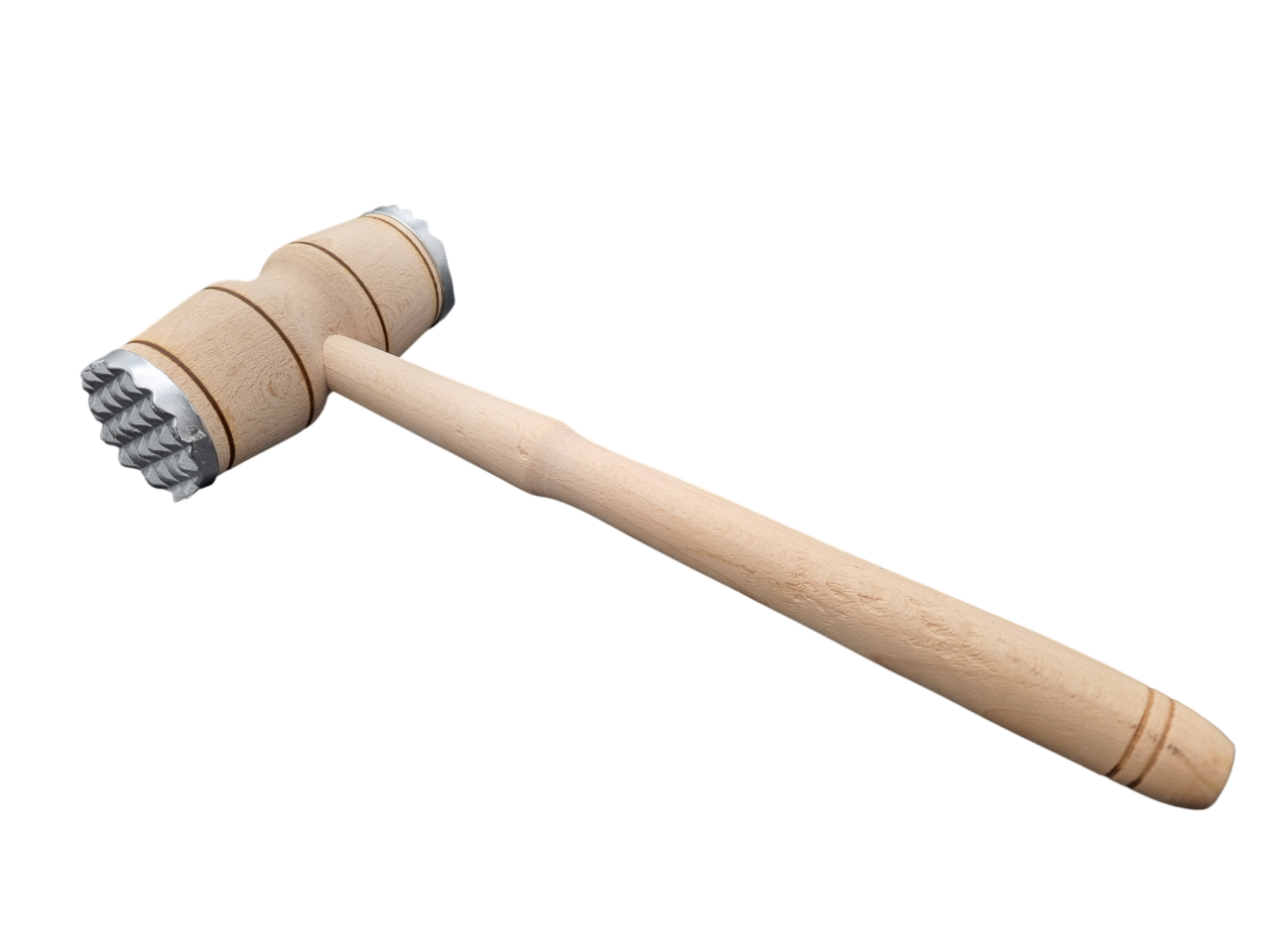 Ciocan pentru carne realizat din lemn natural de fag, prevăzut cu două fețe din metal pentru frăgezirea eficientă a cărnii. Lungimea de 30 cm oferă o priză confortabilă și control bun în utilizare. Ideal pentru bucătăria de acasă sau pentru uz profesional (măcelării, restaurante).